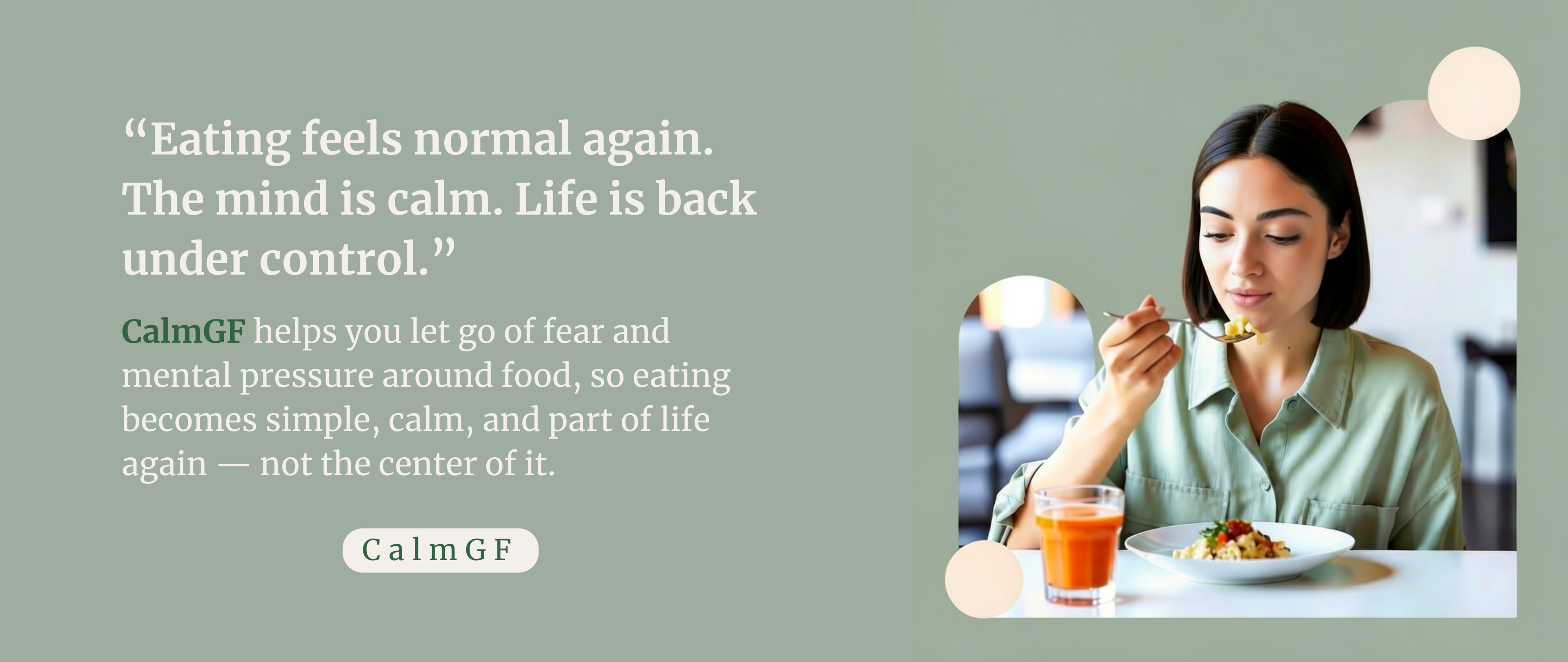 - Within weeks, you live your day with calm, confidence, and freedom from food anxiety.